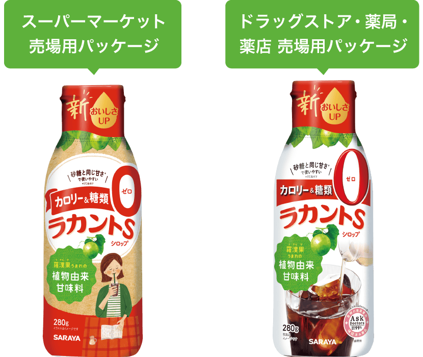 トウモロコシの発酵から得られる植物由来甘味成分「エリスリトール」と、砂糖の300倍の甘さを持つウリ科の植物「羅漢果(ラカンカ)」の高純度エキスを使用し、バランスよく配合することによって砂糖の甘味度(甘さ)に近づける工夫を行っています。