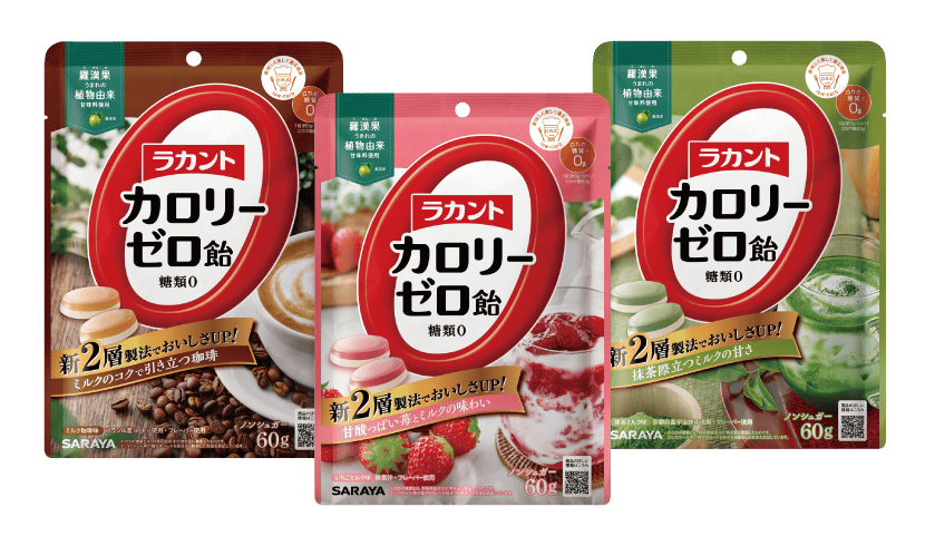 砂糖を使うことなく、"高純度 羅漢果エキス"の上質な甘味と"食物繊維"を配合することで、さわやかな甘さに仕上げました。カロリーをひかえたいけれど、甘いものが食べたい!というダイエット時にはもちろん、お出かけにも。