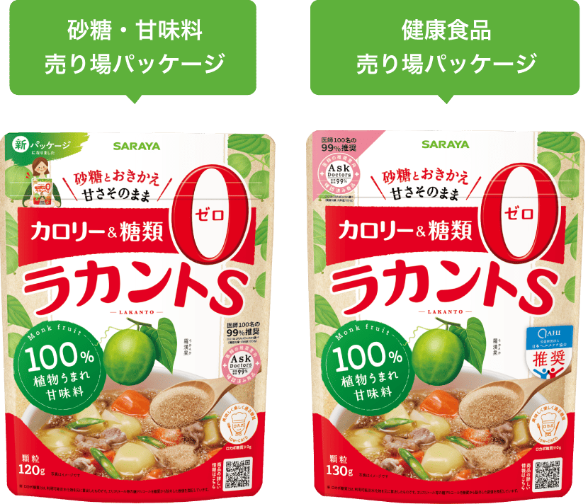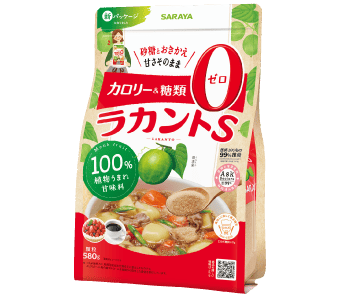 とうもろこしの発酵から得られる植物由来甘味成分「エリスリトール」と、砂糖の約300倍の甘さを持つウリ科の植物「羅漢果(ラカンカ)」の高純度エキスでつくられたカロリー・糖類ゼロ、100%植物うまれの甘味料です。